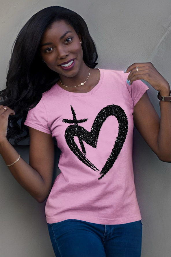 Introducing the "Eternal Love Tee" – featuring a heart with a cross, in a laid-back brushstroke vibe, a symbol of Christ's eternal love for us. Step out with confidence with this relaxed yet feminine tee, wrapped in faith and style